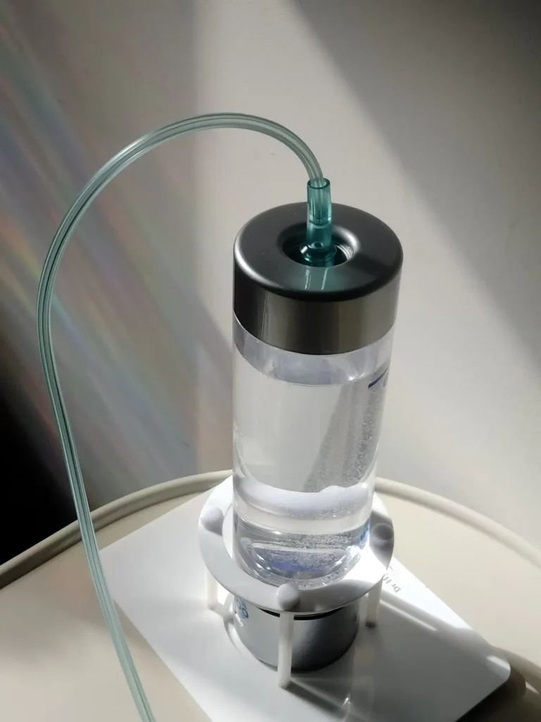 当院で水素吸引にご使用頂く『ドクター水素ボトル』はたくさんある水素マシンの中でもたいへん高性能で高濃度の水素を、取り込む場所(鼻)まで維持して効果を発揮する事が出来ます。